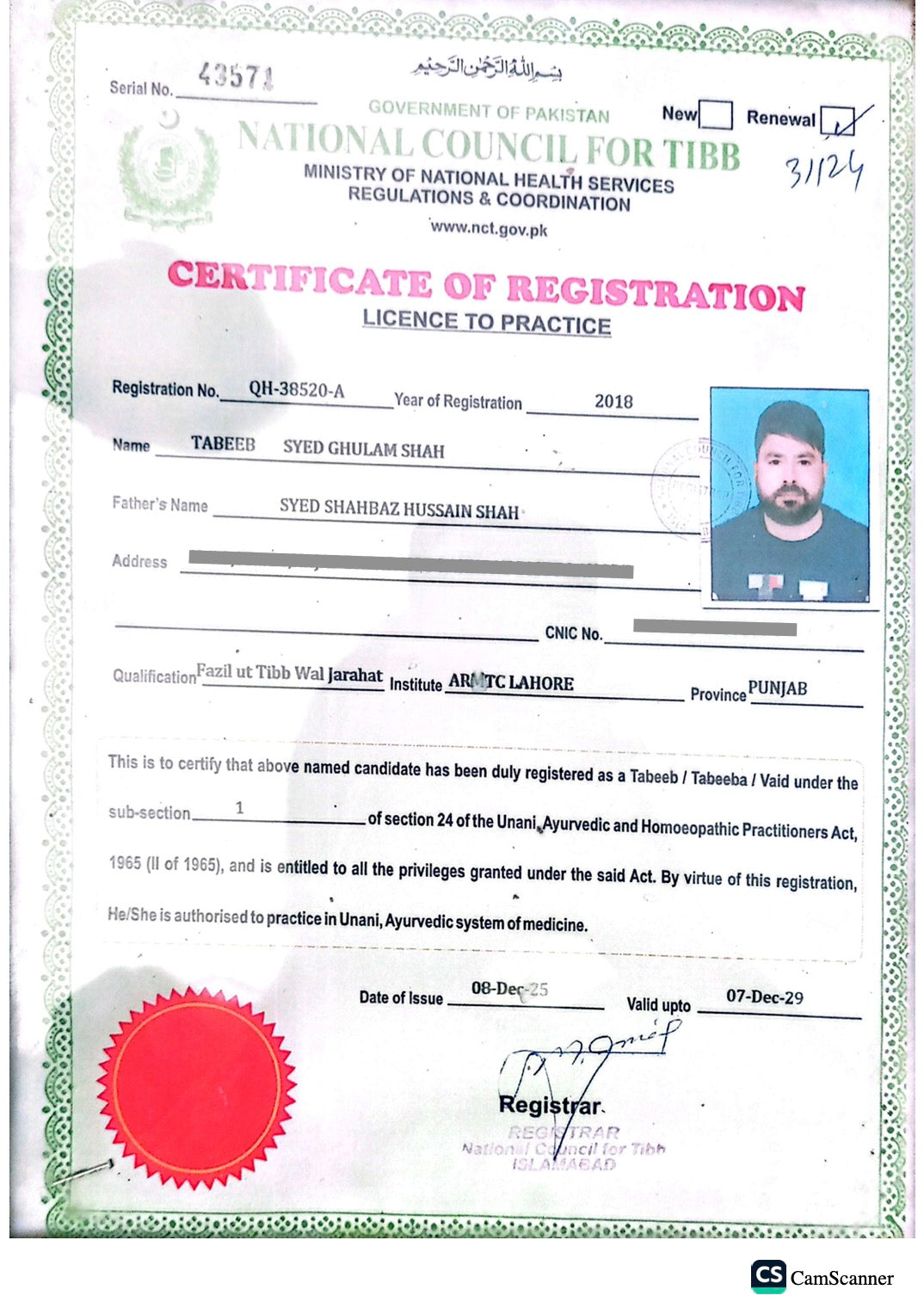 Registration Certificate
